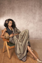 Traditional grey silk saree is beautifully highlighted with a striking black temple border, blending traditional charm with timeless sophistication. The contrast of grey and black adds a refined touch, making it suitable for both festive and formal occasions. Crafted in a graceful drape, this saree is a versatile addition to your ethnic wardrobe.