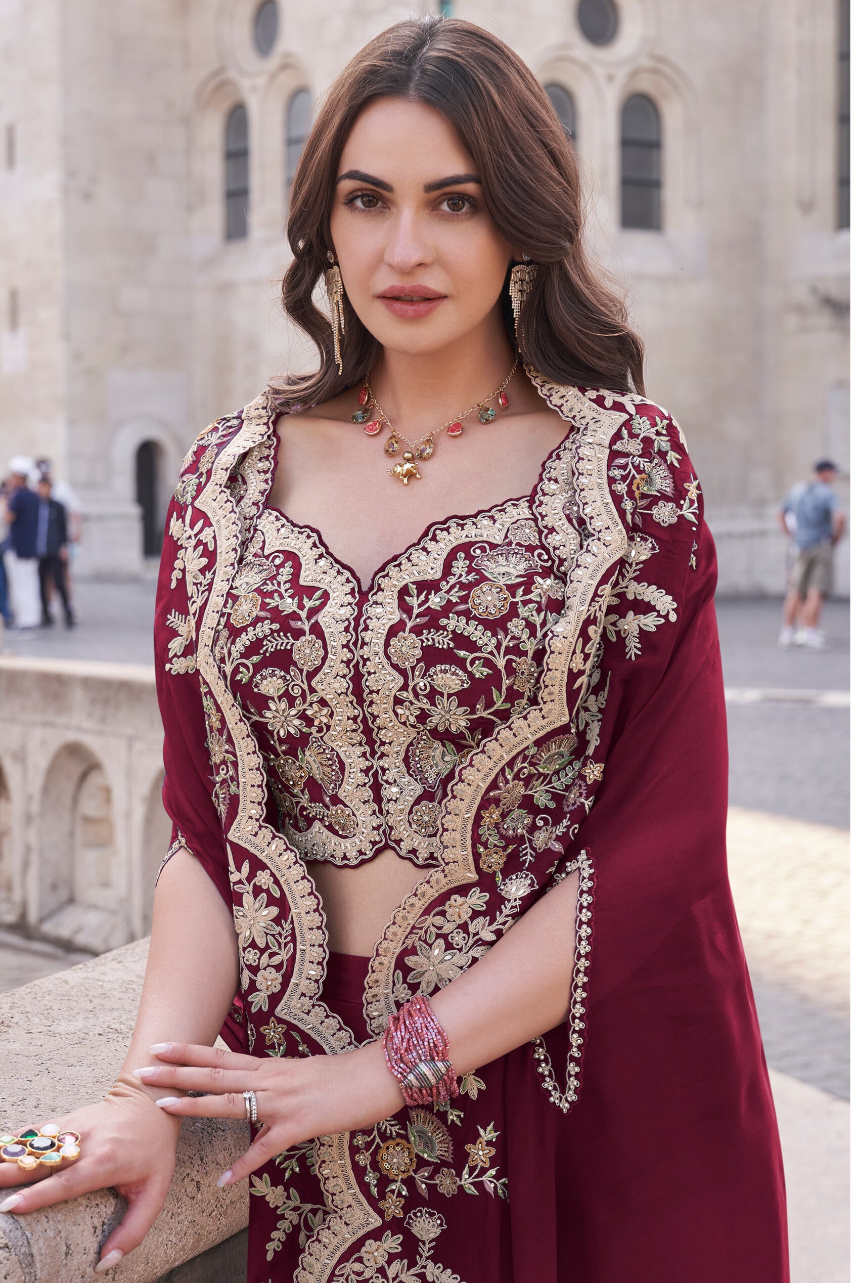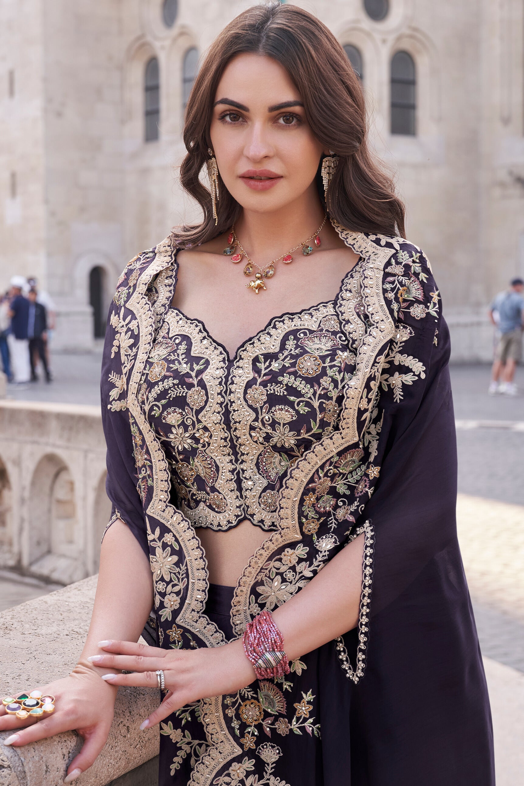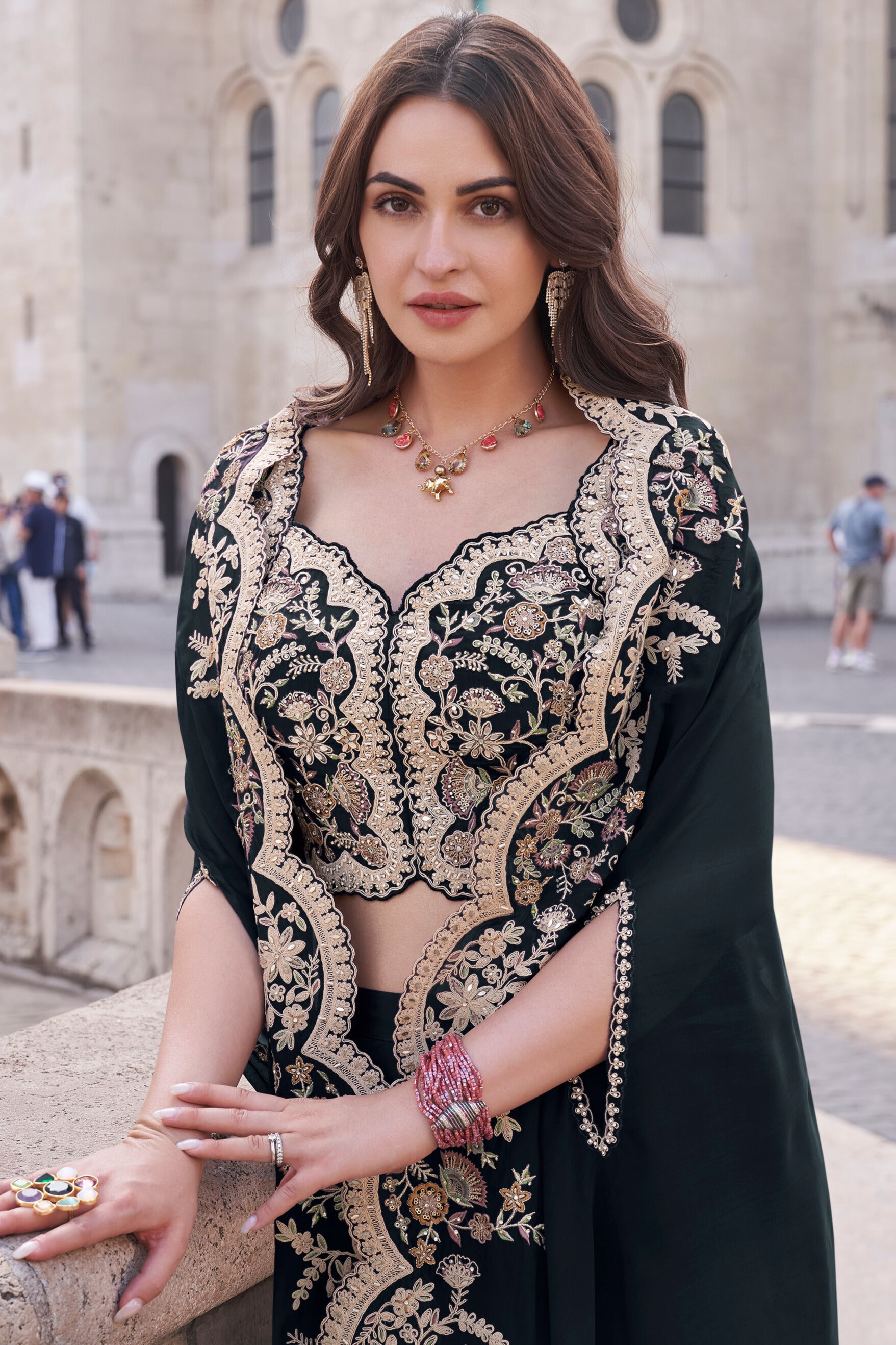 SOFT SILK WITH STONE WORK