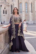 Step into elegance with this partywear sharara dress crafted in flowy georgette fabric. The set features a beautifully embroidered top paired with a matching embroidered shrug, adding a touch of festive grandeur. The flared sharara bottoms bring both comfort and sophistication, making it an ideal choice for weddings, receptions, and special celebrations.