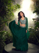 *Lehenga (Skirt):* A beautifully flared lehenga crafted in premium fabric, featuring intricate embroidery and delicate detailing. The flowy silhouette adds a graceful charm to every step.
