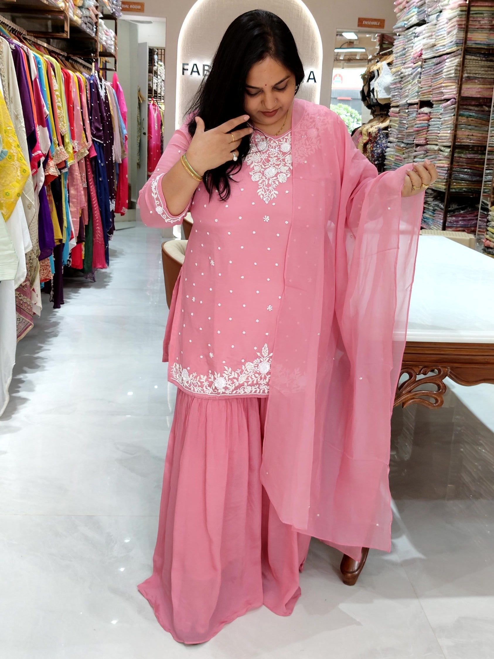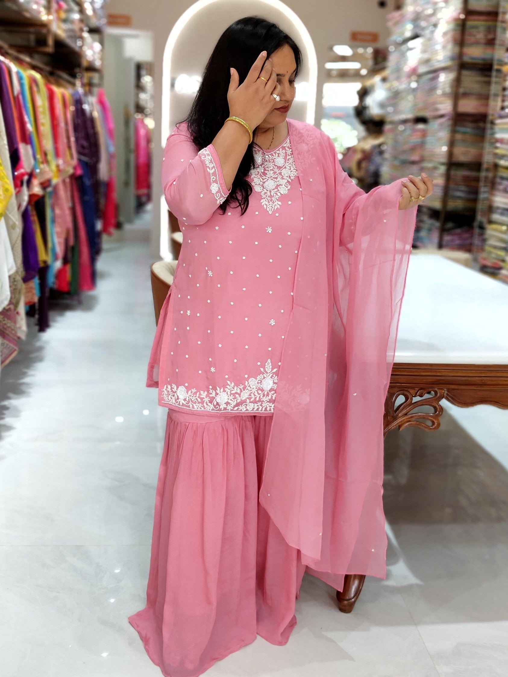 ✨ Pink Handwork Suit with Garara & Dupatta ✨