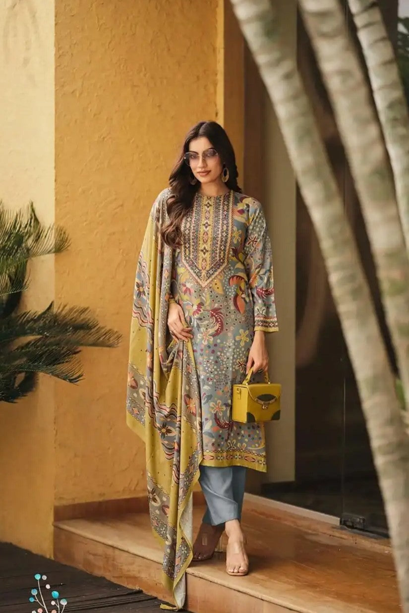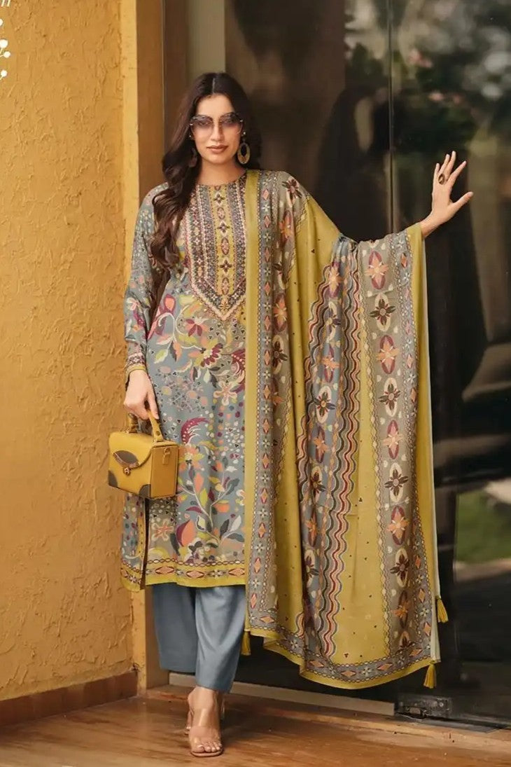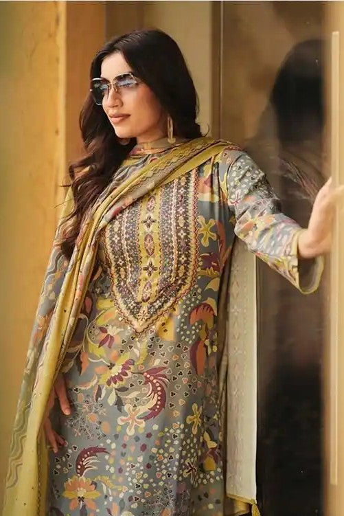 This Premium Quality Pashmina Unstitched Suit with Shawl is a perfect blend of elegance and warmth. Crafted from luxurious Pashmina fabric, it offers a soft, smooth texture and comfortable drape—ideal for the winter season. The suit features rich prints and intricate embroidery, giving it a regal look suitable for festive occasions and gatherings. The coordinating Pashmina shawl adds a touch of sophistication and completes the ensemble beautifully.