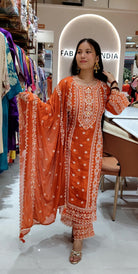 *Dupatta:* A lightweight crape or chiffon dupatta, beautifully finished with embroidered accents, completes the look with elegance.