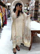 ✨ Elegant Off-White Embroidered Suit Set ✨